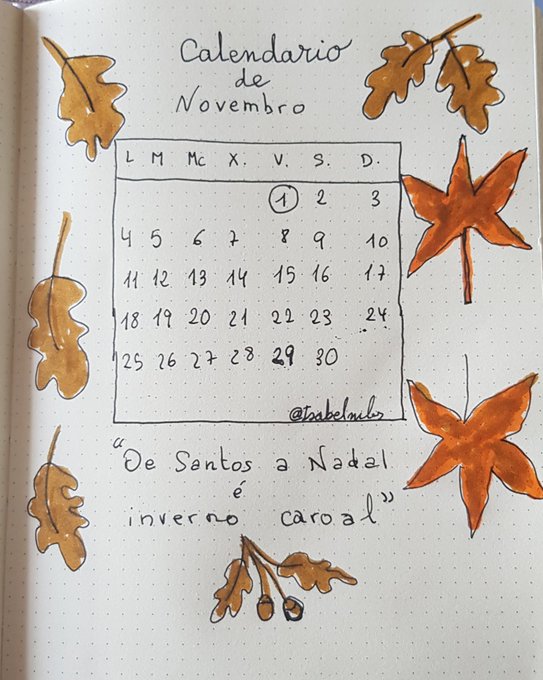 #Día2️⃣7️⃣ A palabra do día no @PortalPalabras é "calendario" #outubrodetinta #GZvisual #Inktober2019 Eu xa poño novembro por aquilo de 'Bendito mes, que empeza con Santos e acaba con San Andrés' porque son moito de Teixido...