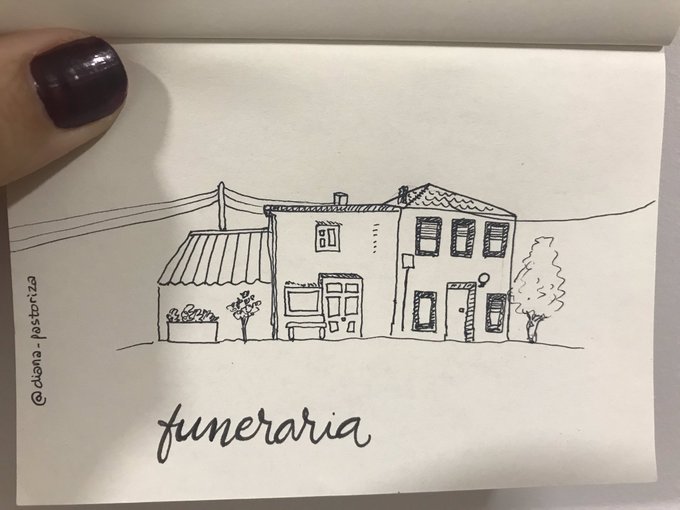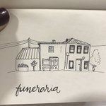 Entramos na recta final do #outubrodetinta #Inktober2019. @PortalPalabras proponnos «funeraria», e debuxamos aquí a de San Ramón. Tanatorio e funeraria na pranta baixa e casa familiar no primeiro andar. E coma esta, moitas na zona de Santa Comba ⬇️