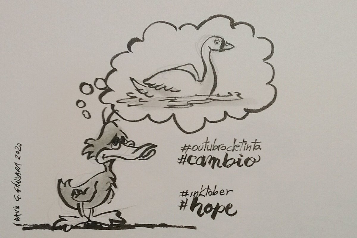 Día 10 do #outubrodetinta David G. Gándara @mr_rookes segue combinando o #inktober2020 co concurso #Ollaapalabradodía #cambio e #hope. @PortalPalabras Encántanos!