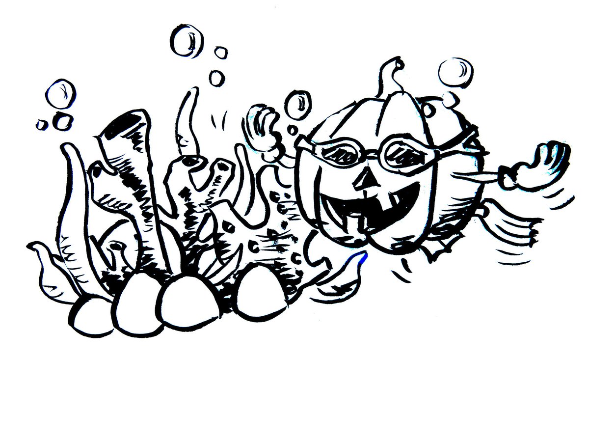 Día 20 do #outubrodetinta "Calacú" porque vén aívo #Samaín #inktober2020 :#calacú #coral @PortalPalabras #Ollaapalabradodía