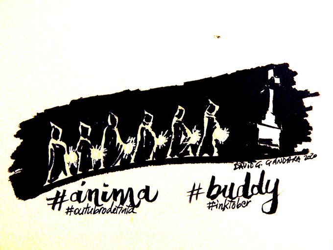 Día 25 do #outubrodetinta #inktober2020. As palabras son #ánima e #buddy. Que mellores buddies que a Santa Compaña :) @PortalPalabras 😍😍😍😍 #Ollaapalabradodía