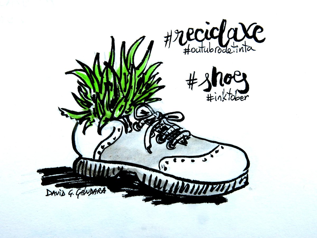 Día 29 do #outubrodetinta #inktober2020. As palabras son #reciclaxe e #shoes. Sempre moi boa idea a de @mr_rookes @PortalPalabras @AcademiaGalega @FundacionBarrie #Ollaapalabradodía