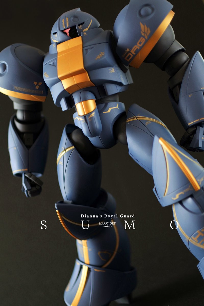 1/100 SUMO -Dianna's Royal Guard- “HARRY ORD custom″ 1/100のスモーです。ハッケヨイ✨ 〇〇専用機って実は全身塗り替えなくても パーソナルカラーを差し色にするだけで良くない?って ちょっとだけ思ってて、ハリーのゴールドスモーも差し色表現で。 なのでデカールも金だけにしました〜↓