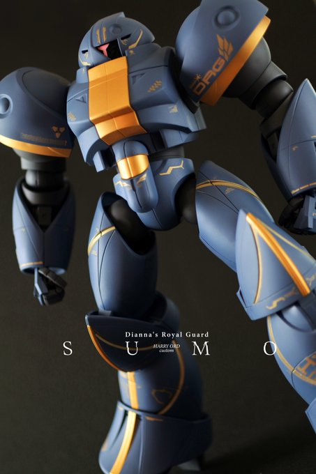 90 322 1/100 SUMO -Dianna's Royal Guard- “HARRY ORD custom″ 1/100のスモーです。ハッケヨイ✨ 〇〇専用機って実は全身塗り替えなくても パーソナルカラーを差し色にするだけで良くない?って ちょっとだけ思ってて、ハリーのゴールドスモーも差し色表現で。 なのでデカールも金だけにしました〜↓ 23/07/19 19:43