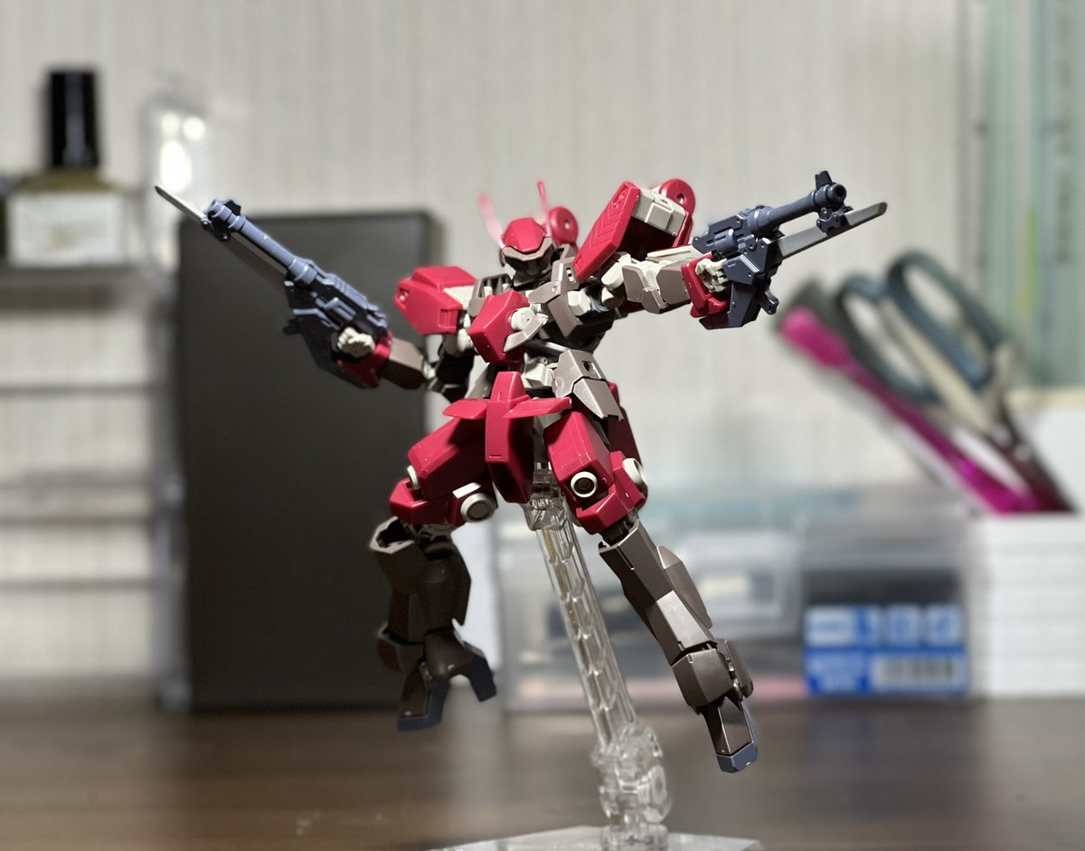 7 72 HG シュヴァルべカスタム(シクラーゼ機)素組完成 ワインレッドのカラーリングに銃剣付きのハンドガンがかっこいいっすわ😚 シュヴァルべの余剰パーツがかなり出るから改造派の人にもオススメできるキットかも でも腰とリアスカートがポロポロ取れやすいのはちょっとうざいかな #ガンプラ 22/05/21 21:13