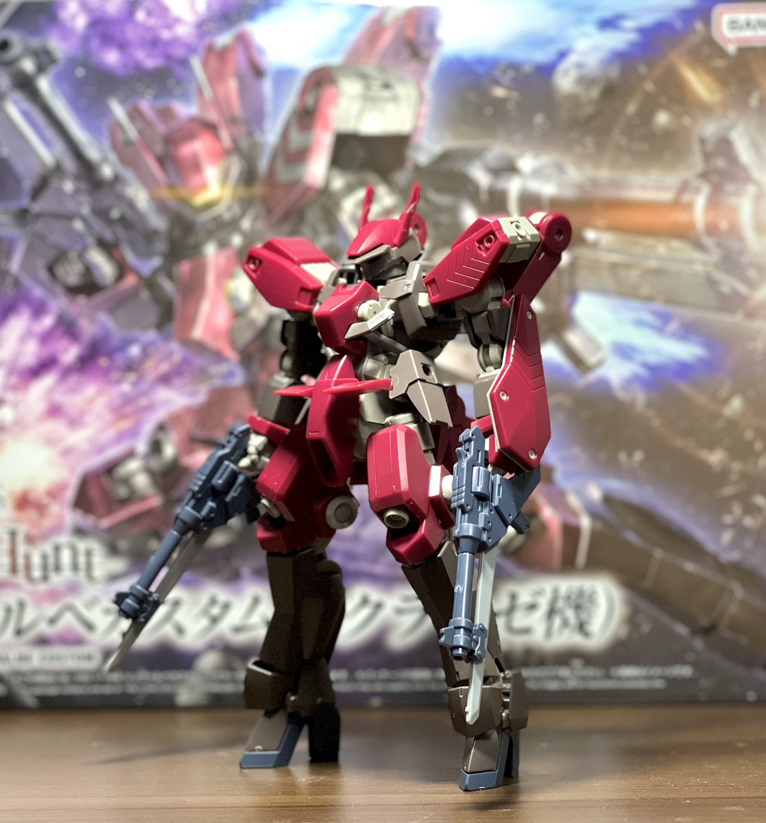 HG シュヴァルべカスタム(シクラーゼ機)素組完成 ワインレッドのカラーリングに銃剣付きのハンドガンがかっこいいっすわ😚 シュヴァルべの余剰パーツがかなり出るから改造派の人にもオススメできるキットかも でも腰とリアスカートがポロポロ取れやすいのはちょっとうざいかな #ガンプラ