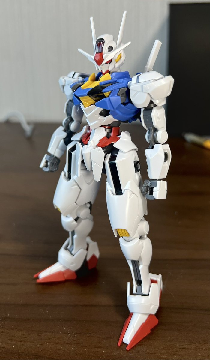 エアリアルせっかくだから赤目のシール使ったんだけど印象全然変わる エアリアルおっとりしてて可愛いってイメージだったんだけど、赤目だと厳つい感じになるわ #ガンプラ