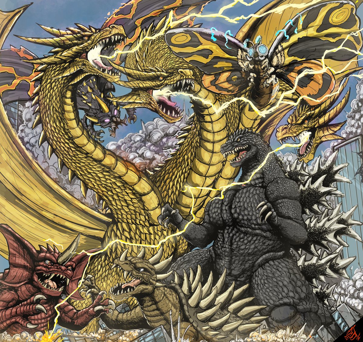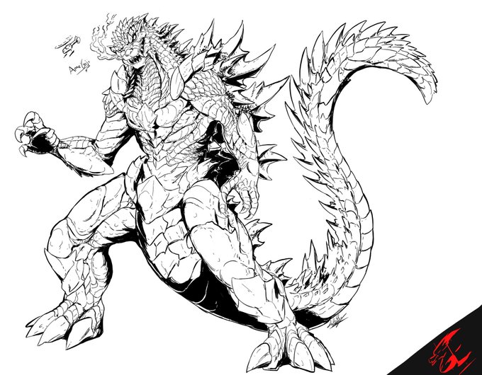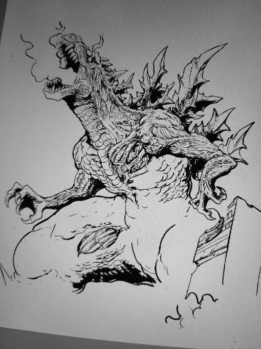 Godzilla vs Daizazu. Commission finished #Godzilla #kaiju #ArtistOnTwitter #Fanart #illustration #drawings