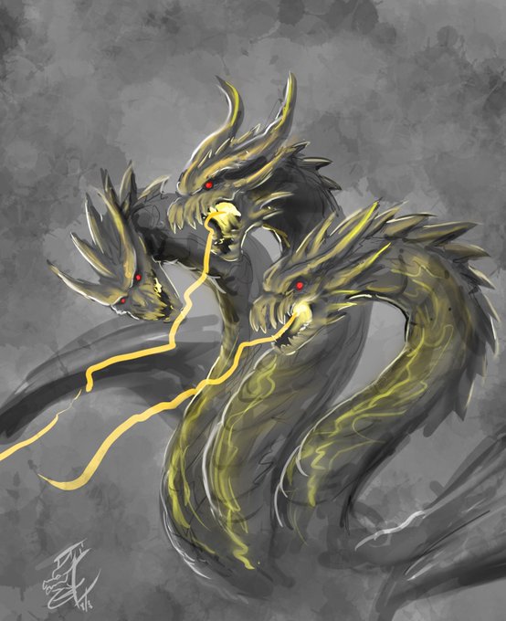 Overdue commission. Godzilla X Ghidorah ( Monster Mash). #art #Artists #Godzilla #fanart #commissions #illustration #drawing #twitter