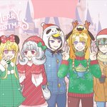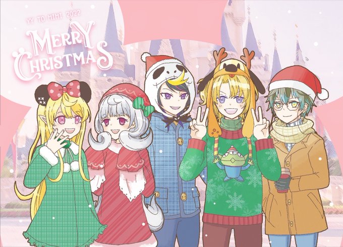 My Bestie draw my oshis as a gift for me🎅 They're so so so so so cute💚💖💜💛💙 - I'll bring them to Disney Land like this amazing draw in the future with you 🫶 @Kawakirin 大歪歪聖誕快樂🎄我推們好快樂好可愛😭❤️🔥 #PomuPaint #Reimural #YaminoArt #drawluca #Ikenography