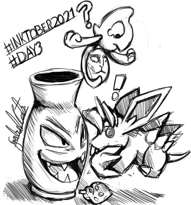 For the #tik theme, I made the joltick attacking Herdier. #inktober #inktober2021 #inktober2021day14 #day14 #art
