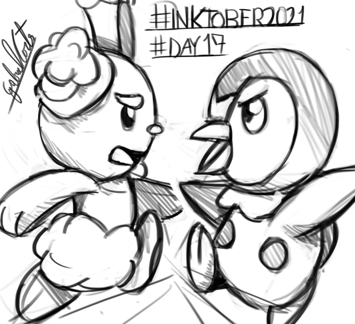 Yesterday there were some problems that make it impossible to me draw, so I will post today the #day16 and #day17. For the #compass theme I made nosepass venturing. For the #collide theme I did the buneary and piplup battling out. #inktober #inktober2021 #inktober2021day16 #art