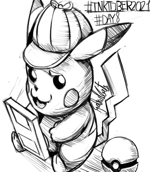 For today I made Detective #Pikachu playing a #Gameboy, it's pretty simple because I didn't have much time xD #watch #inktober #inktober2021 #inktober2021day8watch #art