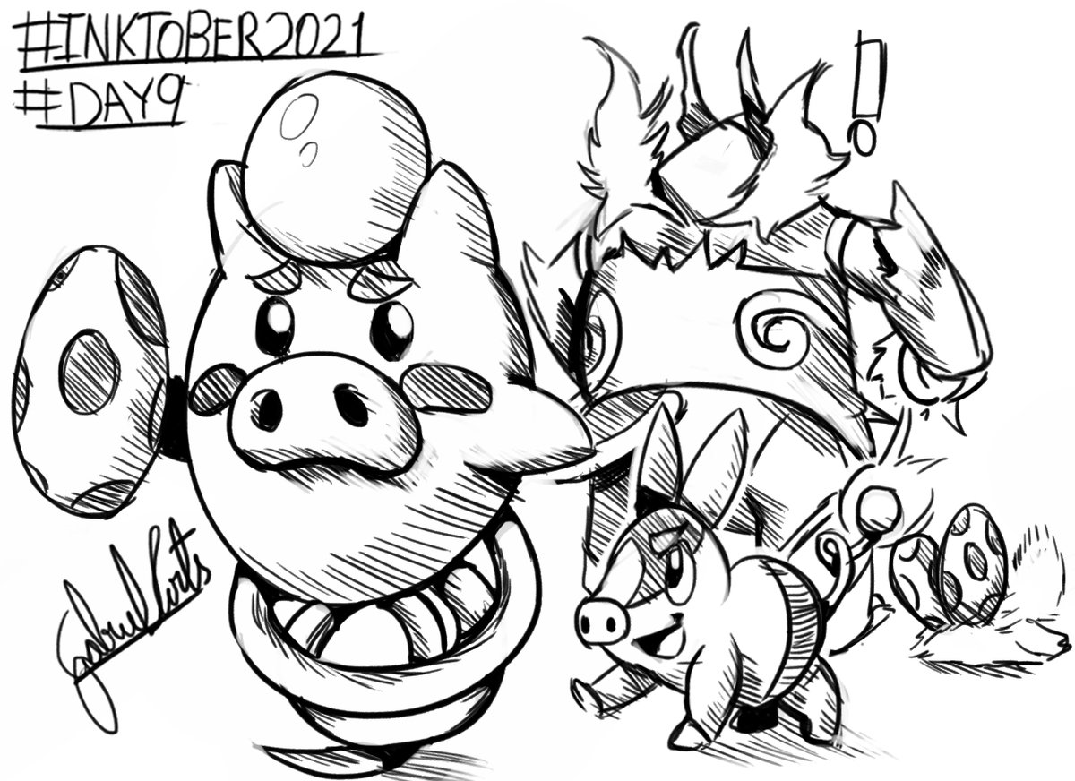For the #pressure theme, I made the spoink stealing a tepig egg. 🐷 #inktober #inktober2021 #inktober2021day9 #art #draw