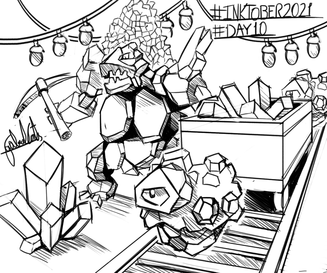 For the #pick theme, I made the colossal and rolycolys by mining crystals in a cave. #inktober2021 #inktober2021day10 #day10 #art #pokemon