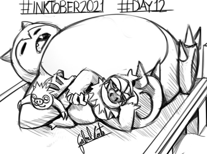 testing new brush :D. For the #stuck theme, I did snorlax sleeping with some #pokemons. 😴💤 #inktober #inktober2021 #inktober2021day12 #day12 #art