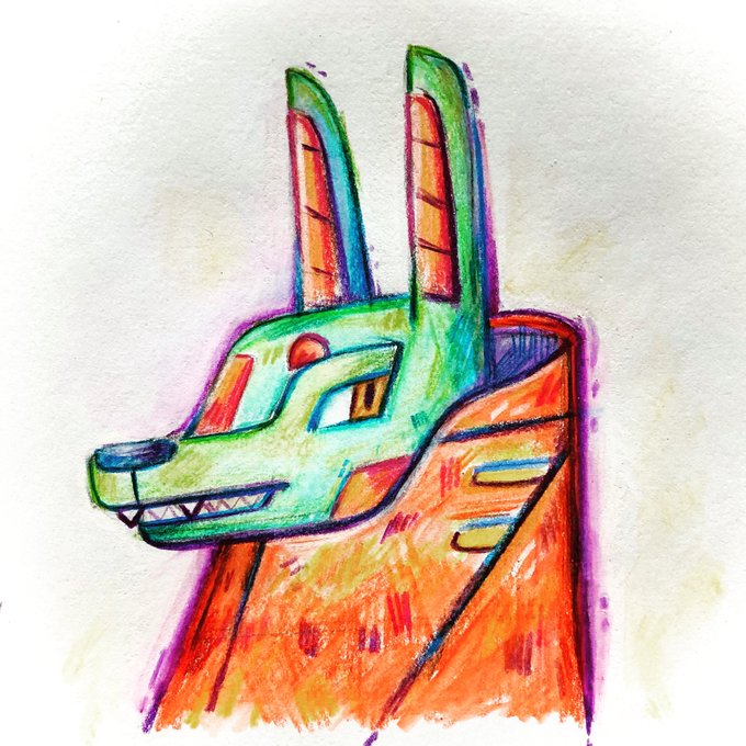 My first attempt with watercolor pencil! Hello there Space coyote ⭐️ 🐺 🪐 Any advice will be appreciated! #sketch #colorful #coyote #wolf #kidlit #illustration #sketchandbreakfast