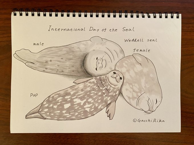 3月22日は、#国際アザラシの日 日本で会えない南極に住む ウェッデルアザラシを描きました❤️ #あざらし #seal #InternationalDayOfTheSeal