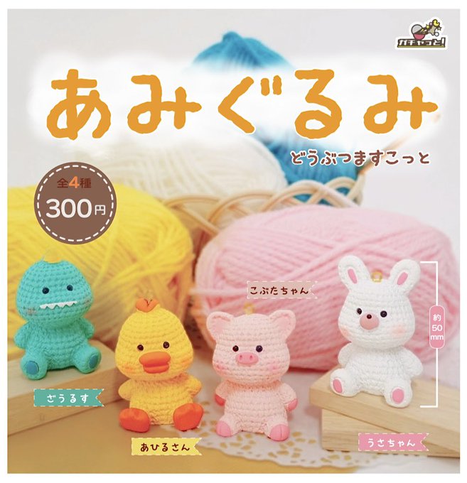 10 40 . / ٩( ᐛ )وガチャっと!9月発売商品 \ 【あみぐるみ】どうぶつマスコット ほんのりピンクなほっぺとつぶらな瞳を持つどうぶつさん達が登場🦖🐥🐷🐰 ̖́- リアルな編み目がなんともいえないかわいらしさ…♡🧶 #カプセルトイ #あみぐるみ #ハンドメイド 22/06/01 18:00