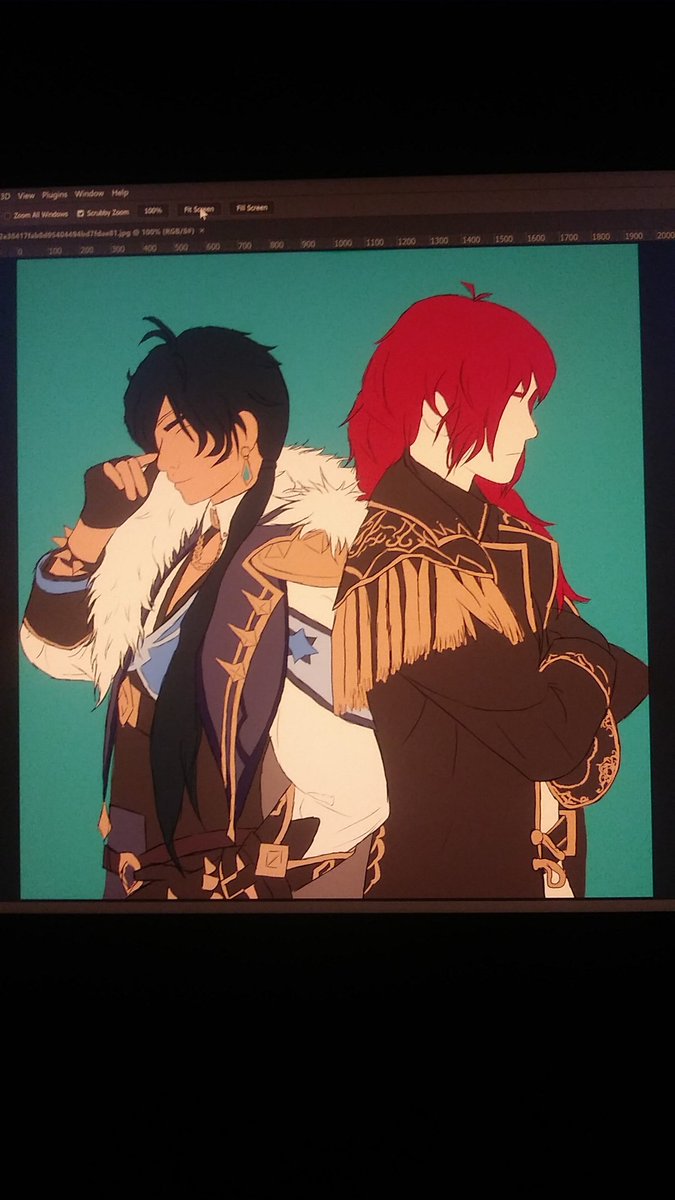 2 hours in! Finally at a good stopping point so I can go sleep lol #genshinimpactfanart #Diluc #kaeyaalberich #inprogress