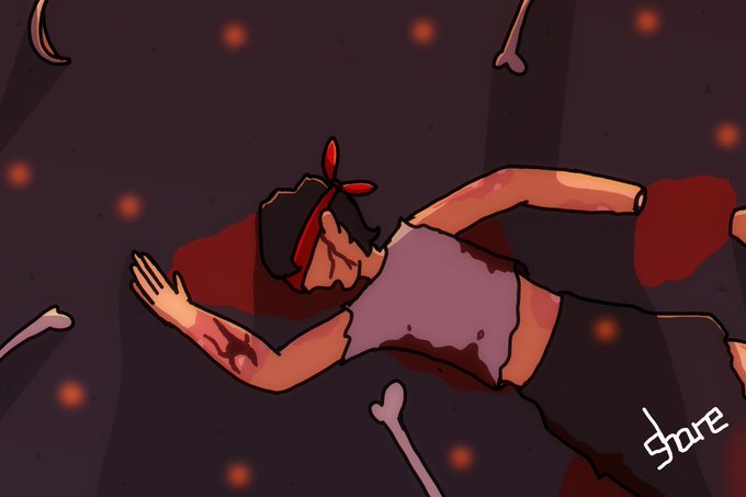 Day-17 Slaughter #Revotober #Inktober #WhatsHappeningInMyanmar Even though the urban areas are seemingly "peaceful", in other areas of Myanmar, hundreds of innocent people are murdered brutally as if they were savage animals by junta. Can you hear their screams for help?