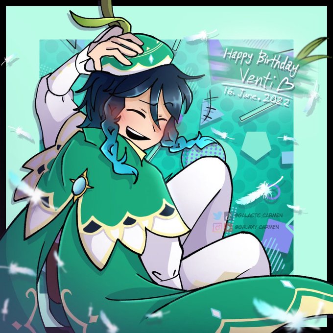 Happy (late) Birthday Venti! .・。.・゜✭・.・✫・゜・。. Sorry I'm late my beloved 😫✋ It took a long time to draw/colour him- at least he looks really nice here :'D #ventifanart #GenshinImpact #genshintwt #genshinimpactfanart #artistsontwitter #FANART