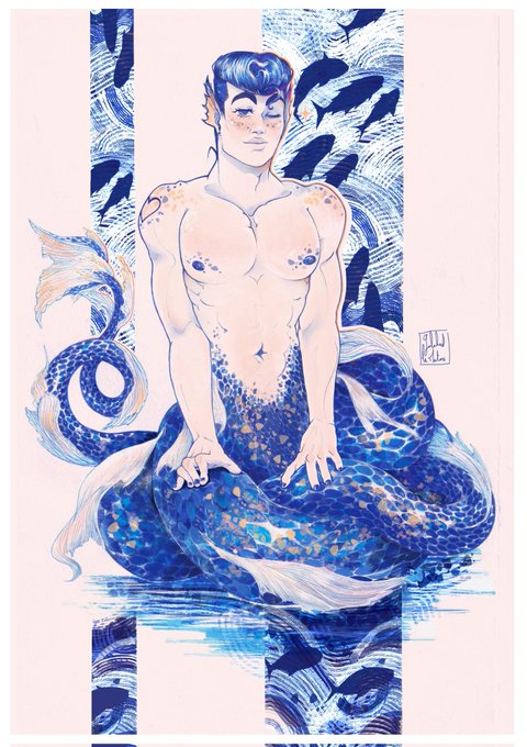 19 110 Josuke being caught (totally by accident) by the tough but sweet fisherman 💙🌊 #mermay #josukehigashikata #Josuyasu 22/07/08 06:28
