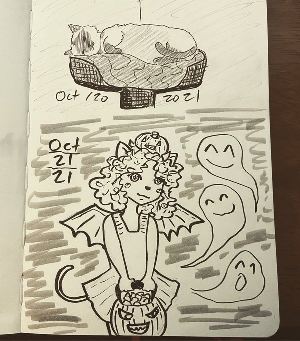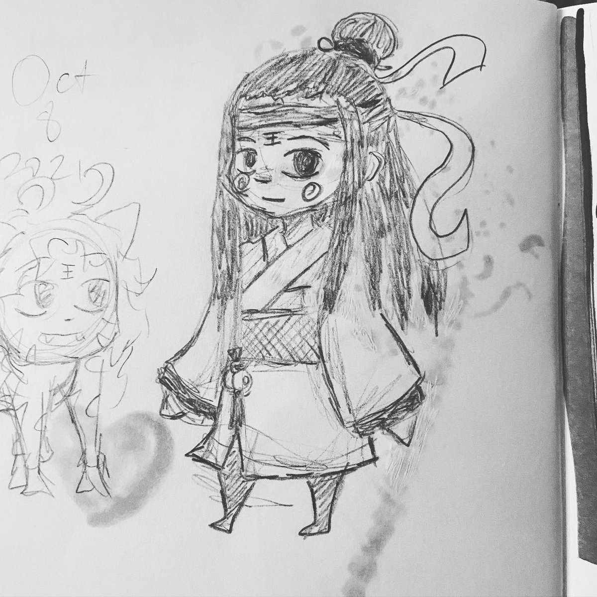 Day 8 Cursed #modaozushi … Yea that’s a weird cat Wei Wuxian… Look… inktober is a journey ok? Second drawing is a sketch of our kitty sleeping. #inktober Caught up posting tho :)