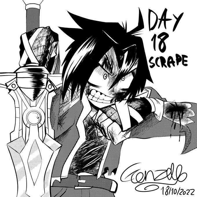 #inktober2022day18 Scrape Gonzalo Starjade got scraped by the intense battle against a violent monster enemy. Will he survive this intense battle? #Inktober #inktoberday18 #inktober2022scrape #manga