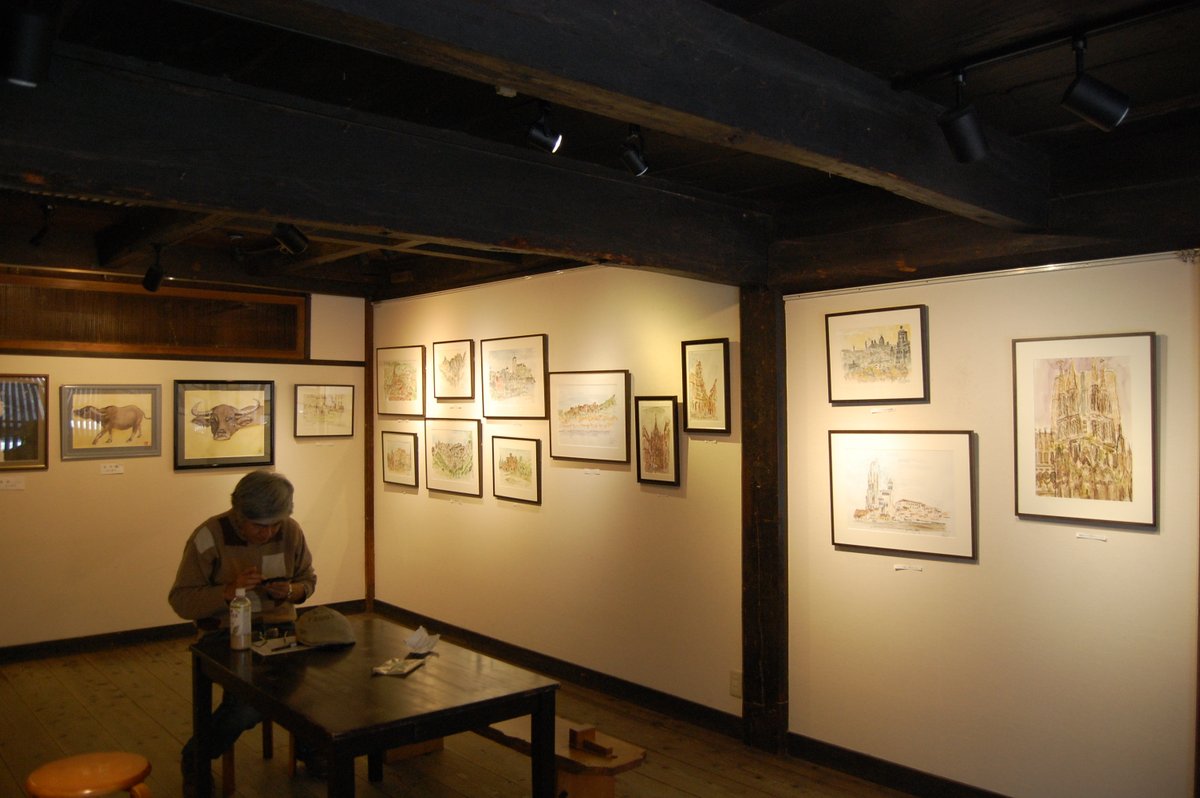 有馬郷司 第11回 旅の水彩スケッチ展 11月10日(火)まで。 海外の風景の水彩スケッチ作品と、有馬さんの友人による水墨画、陶器、油絵、仏画などの作品展示。海外ツアーで訪れた旅先の風景を、その場で勢いよく一気に描き上げるスタイルの有馬さんの、年に一度の作品展です。 #宮島 #水彩 #スケッチ
