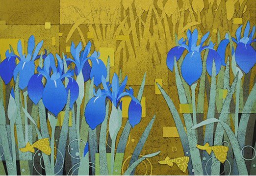 「残暑お見舞い申し上げます」 「本荘正彦 木版画展」 9月4日(土)〜25(土)ギャラリーいまじんにて開催 *初日は作家が在廊 画像は、「青の回遊」36×42㎝ 越前手漉き和紙 水彩 imagine888.com #本荘正彦 #多色摺木版画 #伝統技法 #水彩 #ガッシュ #草花