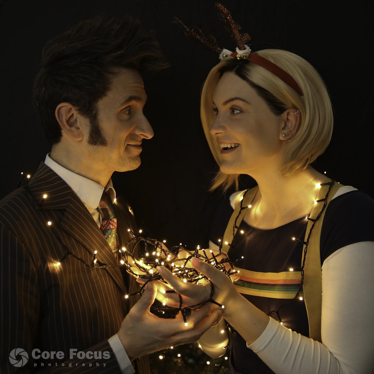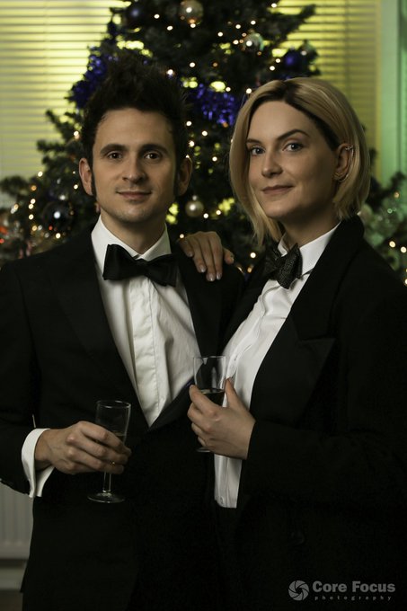 ‘Here, let me help you. It’s better with two.’ I love that I am able to share this hobby w/m husband ❤️ #doctorwho #tenthdoctor #thirteenthdoctor #cosplay @DoctorWho_BBCA @bbcdoctorwho #christmas #doctorwhocosplay #dwfancreations