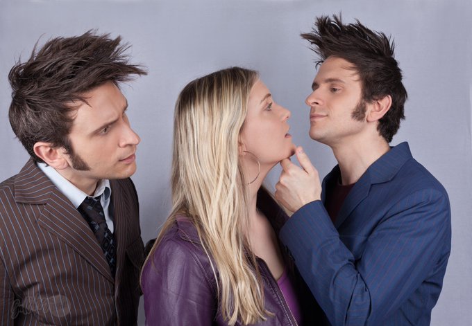 Who is in for some double trouble? This shoot was so much fun but so hard to do as well xD we were only with the two of us 😅🤣 #tenthdoctor #metacrisisdoctor #tenthdoctorcosplay #doctorwhocosplay #doctorwho #cosplay #rosetyler @DoctorWho_BBCA @bbcdoctorwho