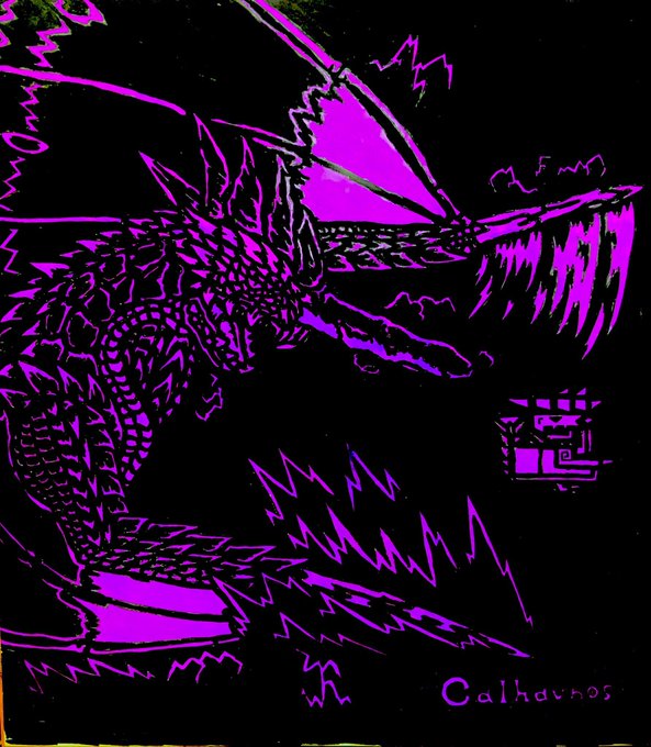 7 23 #絵描きさんと繫がりたい #MH自作モンスター #創拡 「紫電のボルティックスホーン」 雷角竜カルハヴノスの切り絵風イラスト描きました 19/02/01 17:49