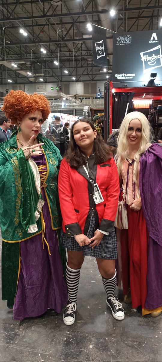 Por la falta de su tercera hermana Mary, estaban algo desanimadas, pero pronto encontraron a otra bruja morena y vestida de rojo que quizá les serviría de ayuda #BrujaEscarlata. #MadridComicPopUp #hocuspocus #Marvel #ScarletWitch #Cosplay