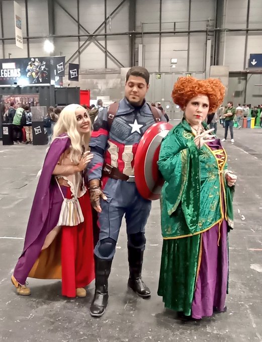 Como si se hubiese enterado de los malvados planes crossover entre las brujas y Loki, pronto apreció el #CapitanAmerica (@madiazpro89 en instagram), pero Sarah hizo de las suyas e intentó seducirlo. #MadridComicPopUp #HocusPocus #Cosplay #Marvel #CaptainAmerica