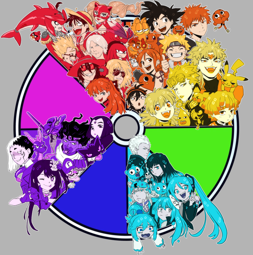 So many good characters on red, couldn't fit them all 😭 Cyan is next! 💙 Suggest cyan characters ✨ twitter.com/Gamusaur/statu…