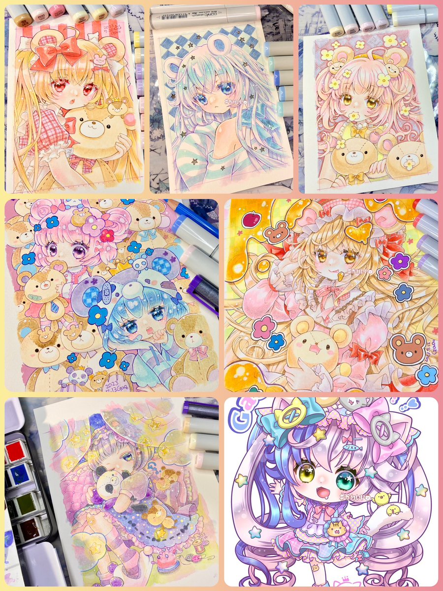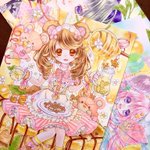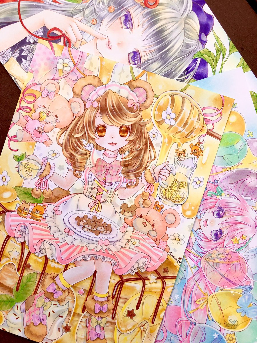 #わたしのテディベア展 やっと1枚完成🧸【くまちゃんと甘い蜂蜜】🍯✨ スキャンは後でまとめてする〜! くま耳の女の子と甘い蜂蜜を🍯💕たっぷりお届けです︎💕︎🥰 周りの🍎🍒🧸🌸をポスターカラーで描いてシールぽくしてみました。 あと2枚間に合わせる!! #コピック #illustraion… twitter.com/i/web/status/1…