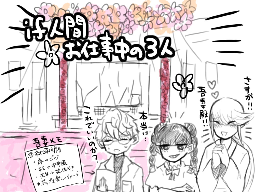 バチコ師匠ハーウェヤー! 師匠描いたことあるよな〜と思って過去絵あさったけど 人間のしかなかったのでタグなしで… 再掲。屋敷のセットをゴエの要望通りに忠実に設計するひろ