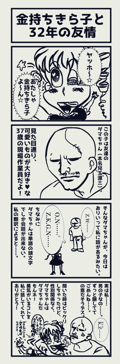 ガレキノシタ4コマ漫画劇場 (略してガレよん)その1 『金持ちきら子と32年の友情』 #漫画が読めるハッシュタグ #4コマ漫画