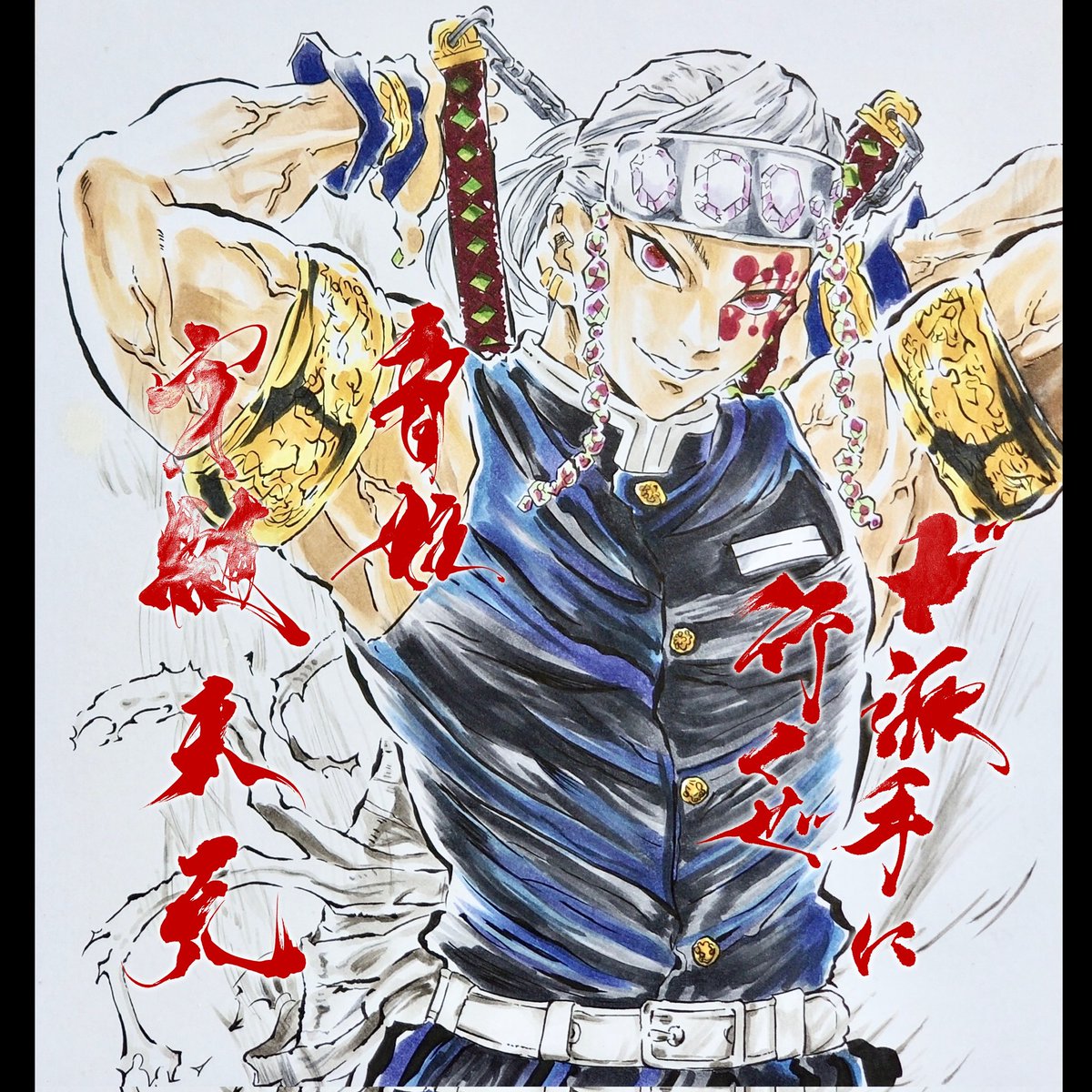 再投稿✨尊敬する書家様に書を入れてもらった🤩転載禁止🈲 #宇髄天元イラスト #天元イラスト #鬼滅の刃イラスト #コピックイラスト #模写イラスト