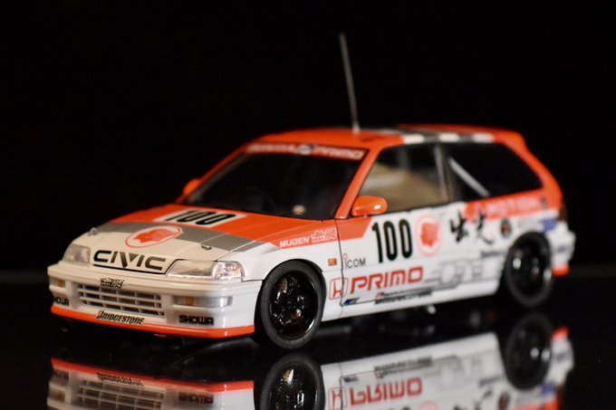 【アオシマ/BEEMAX 出光MOTIONシビック EF9】 やり出すと楽しくなってキリがないので… 完成とします! 初めてドアパカに挑戦してみました。 エンジンはZoomOnのB18を改造して載せてあります。 #All_That_Competition_Car #ワイルドカード部門 #ツーリングカー部門 #アオシマ #BEEMAX #ZoomOn