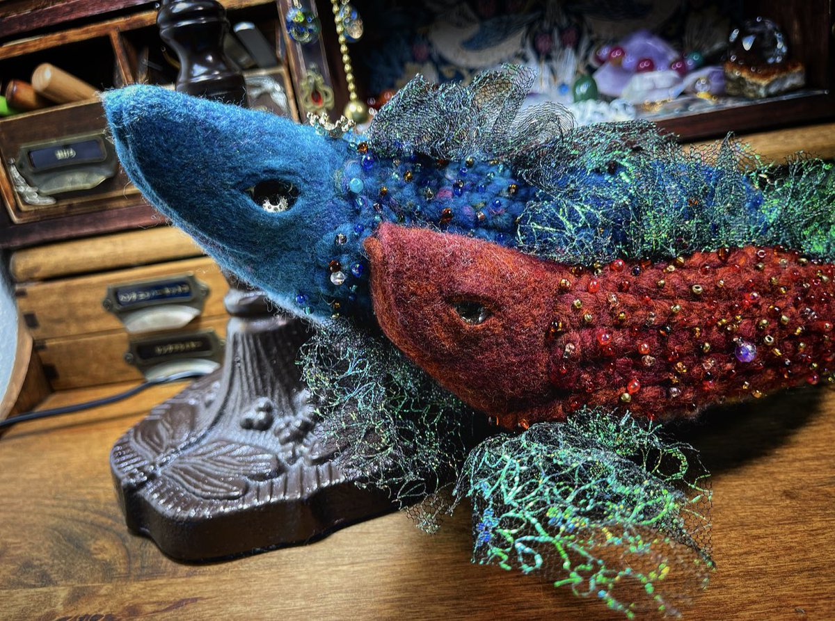 #無言で自社製品画像を投稿すると皆がRTしてくれるそんなありがたいハッシュタグ #制作過程の写真だけで興味を持ってくれる方へ届け #羊毛フェルト @Niko26M さんに撮ってもらったサカナ ほぼほぼ完成✨ 最近ずーっとインスタLive中に制作していました。