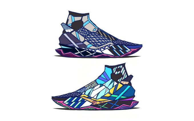 Late #Reine2versary gift, sneaker inspired by the theme and colors of Illusion Night Teaser MV Two variants, one with "HALU" patch in Illusion Night font and one patchless Happy 2nd Anniversary Reine 🎉🎉 #Reinessance