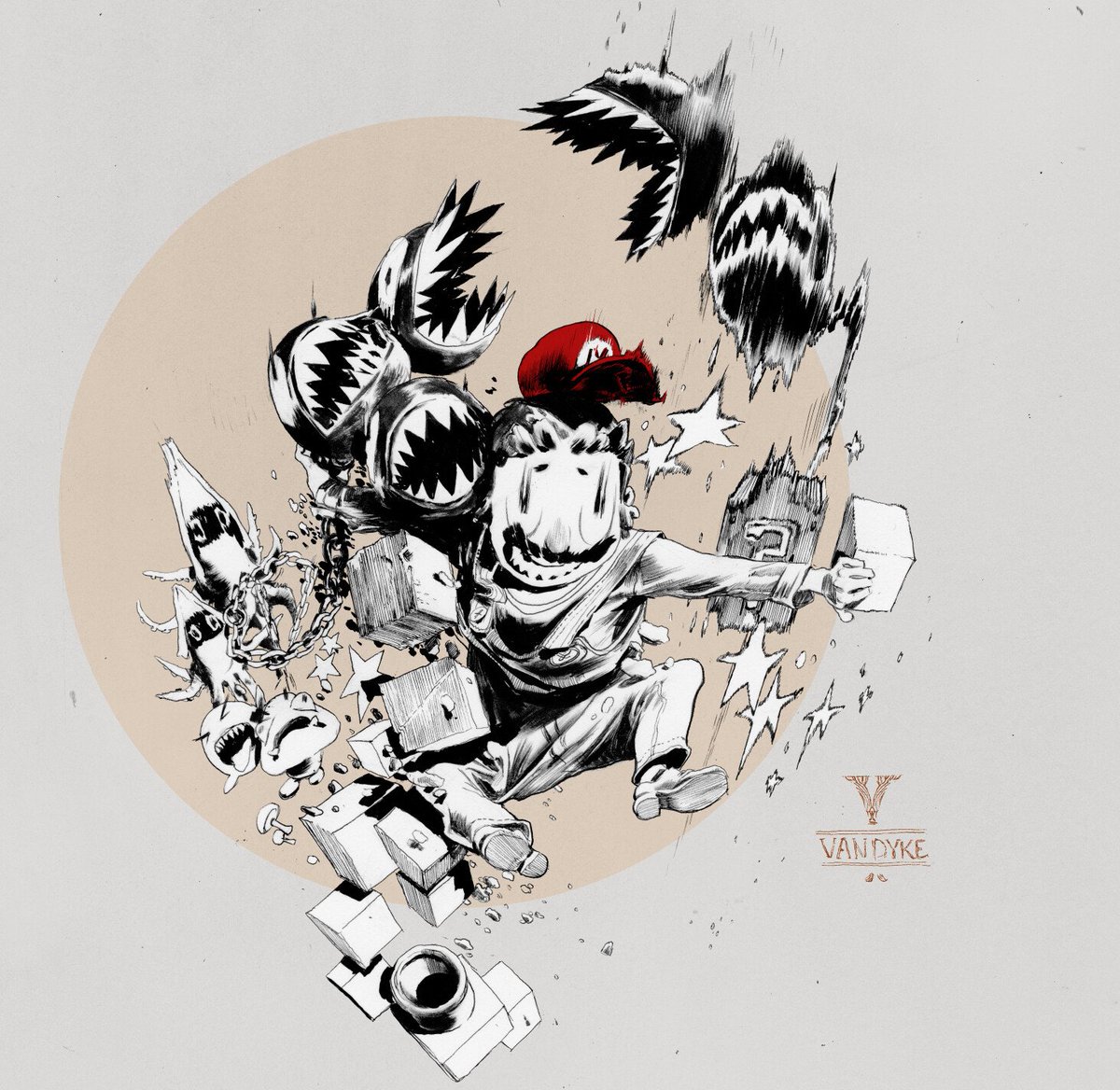 Inktober (Ode to retro and indie games) day 6. Mario Mario of Super Mario Bros. #inktober #inktober2019 #ink #mariobros #supermario #inkt...