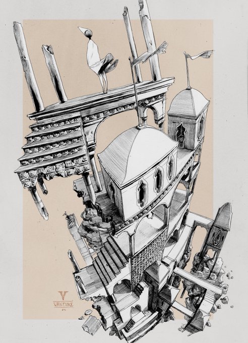 #Inktoberday11 #Monumentvalley. I don't think I've ever thrown 6-point together this quickly... and never plan to again! #inktober #inktober2019 #ink #indiegames instagram.com/geirrodvandyke/
