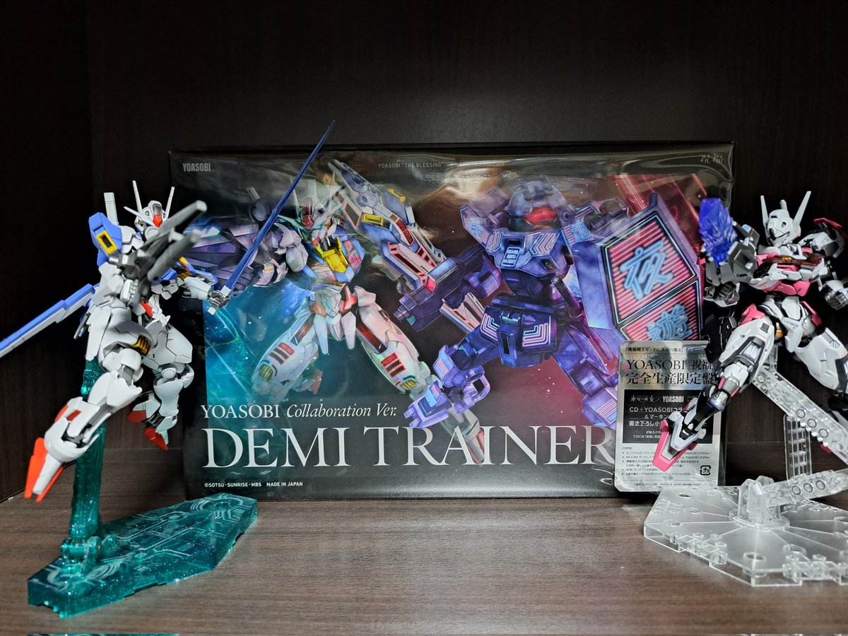 エアリアルとルブリスで挟んでディスプレイしてみたわス( *´艸`)💕 限定デカール使うためにもぅ1体エアリアルが欲しぃだわぃねщ(゜▽゜щ) 『YOASOBI』エアリアルとデミトレーナーで次はディスプレイしたいわね~( *´艸`) #ガンプラの画像貼るとRTされると聞いて #水星の魔女