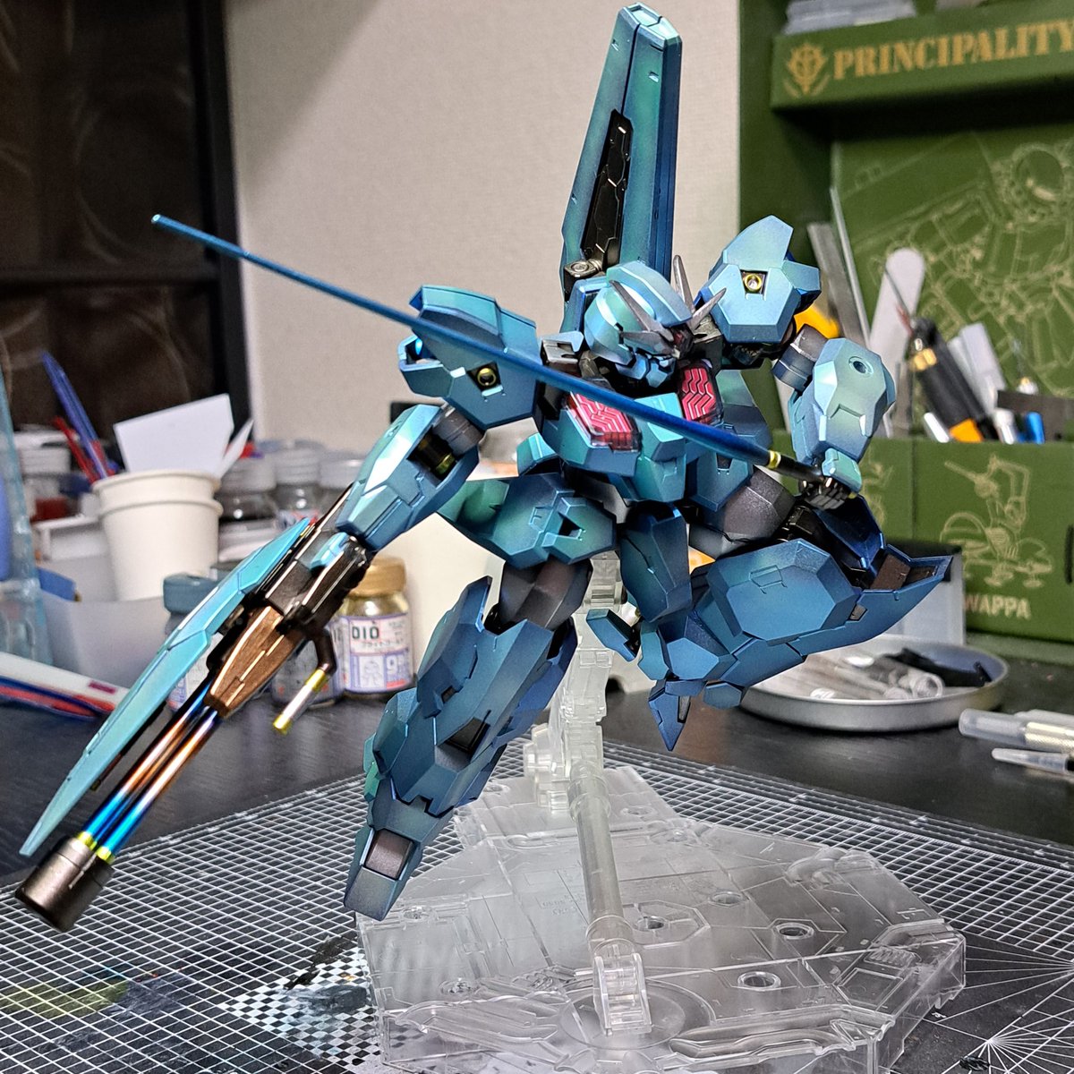 ほぼ完成〜ヾ(*´∀`*)ノ あとは明日、トップコート噴けば完全に完成だわぃな(〃艸〃)💕 20年振りくらいにガンプラ出戻りしてエアブラシでの全塗装はまだ4体目だけどめっちゃお気に入りの出来栄えだわ〜 ガンプラじゃないけど #ガンプラの画像貼るとRTされると聞いて #ガンプラ好きと繋がりたい