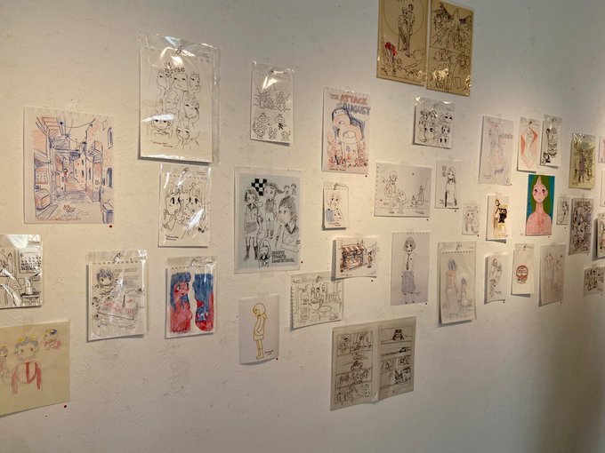 あや坊、あおちんと一緒に、青木俊直先生の個展『THE WALL OF R』を観に行ってきました。ギャラリーの壁いっぱいに貼られた青木先生の「落書き」の数々。その数と落書きの完成度と可愛さに圧倒されました。 明日8/24(水)が最終日、17:00まで。お近くの人はぜひ! libestgallery.jp/monthly.html twitter.com/libestgallery/…