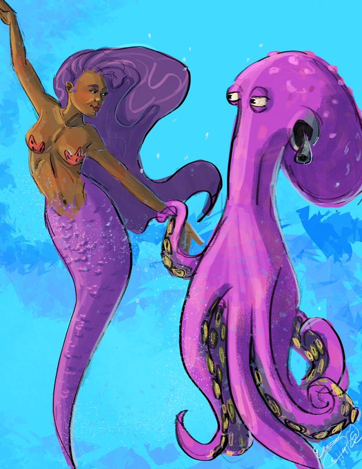 Travis Blaise’s Cato is making. Special appearance in todays MerMay. 19th Day of Tom Bancroft’s MerMay 2022, prompt Octopus. #MerMay #MerMay2022 #WacomMerMay2022 #digital #octopus
